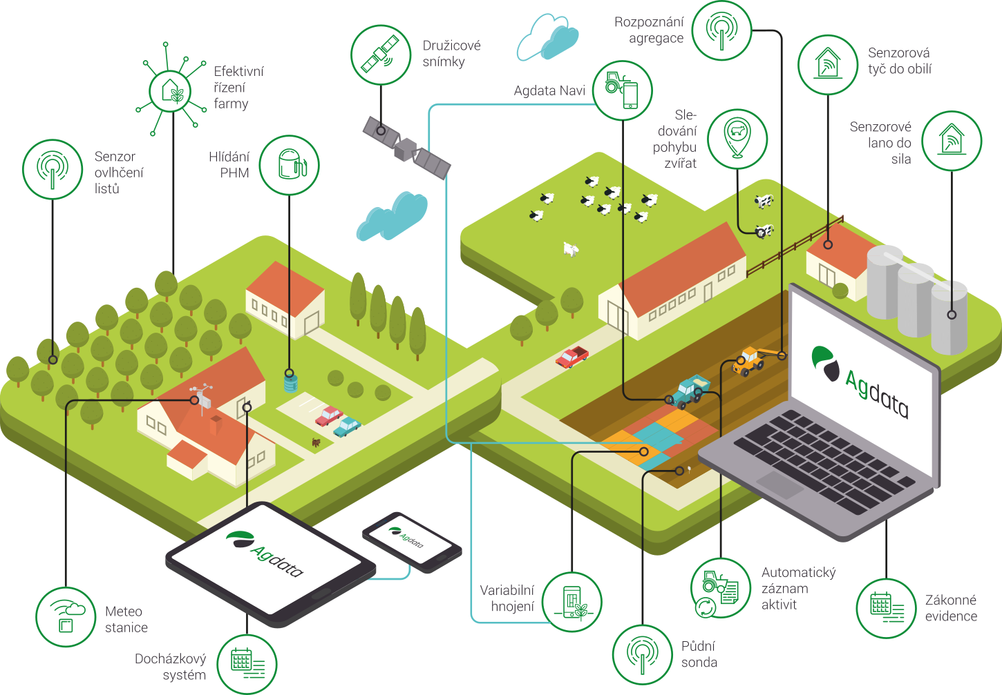Farmy a zemědělské podniky produkují velké množství dat jejichž sběr a analýza je v současnosti převážně zajišťována manuálně a bez využití moderních IT systémů. Využití nových technologií umožňuje farmám významně redukovat náklady a zásadně zvyšuje využitelnost dat v reálném provozu a tím i efektivitu farem.